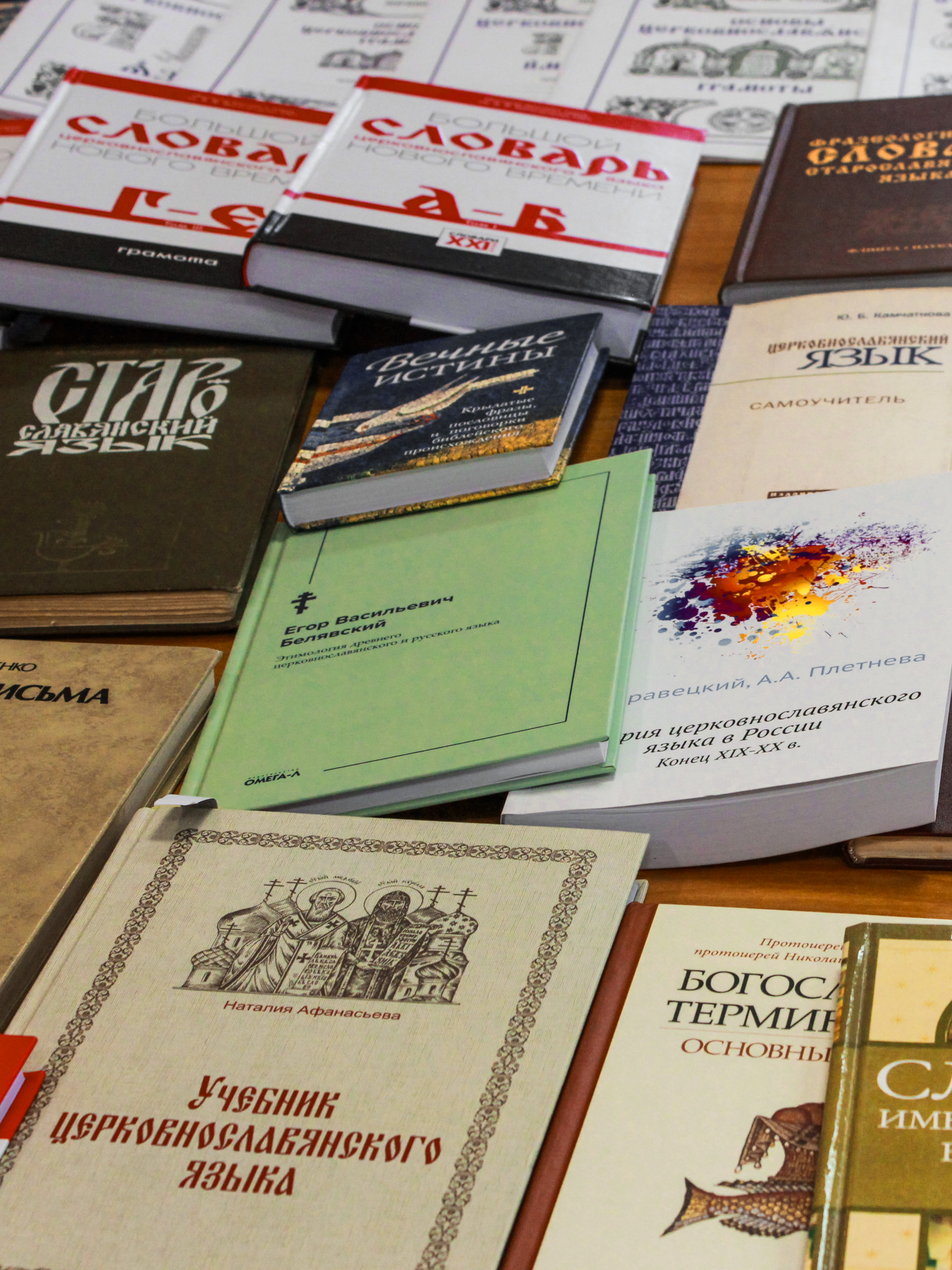 Перад алімпіядай была арганізавана выстава кніг па царкоўнаславянскай і стараславянскай мове. Кожны мог пагартаць падручнікі, як дарэвалюцыйныя перавыданні, так і сучасныя, слоўнікі, а таксама даследаванні па гісторыі пісьменнасці і царкоўнаславянскай мовы.